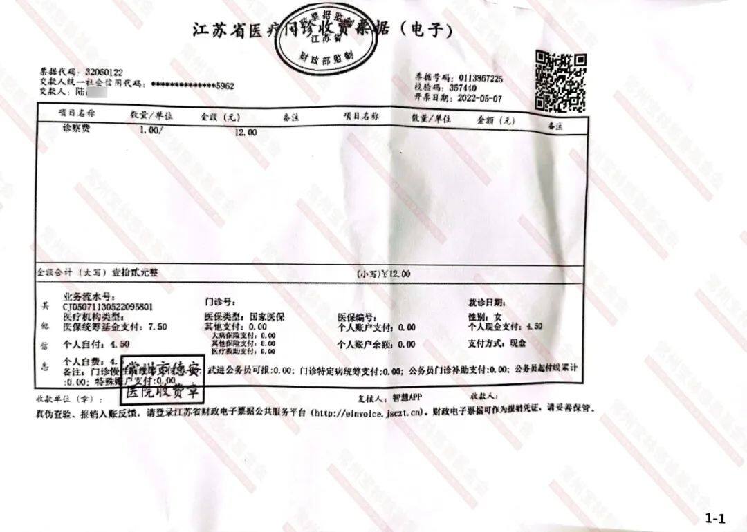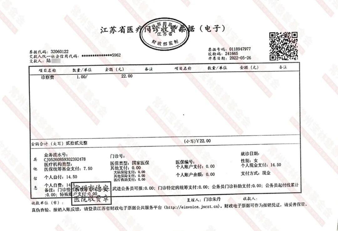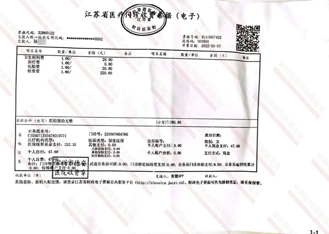 三、5月7日入院检查费用52.18元(化验费47.68元、挂号费4.5元)