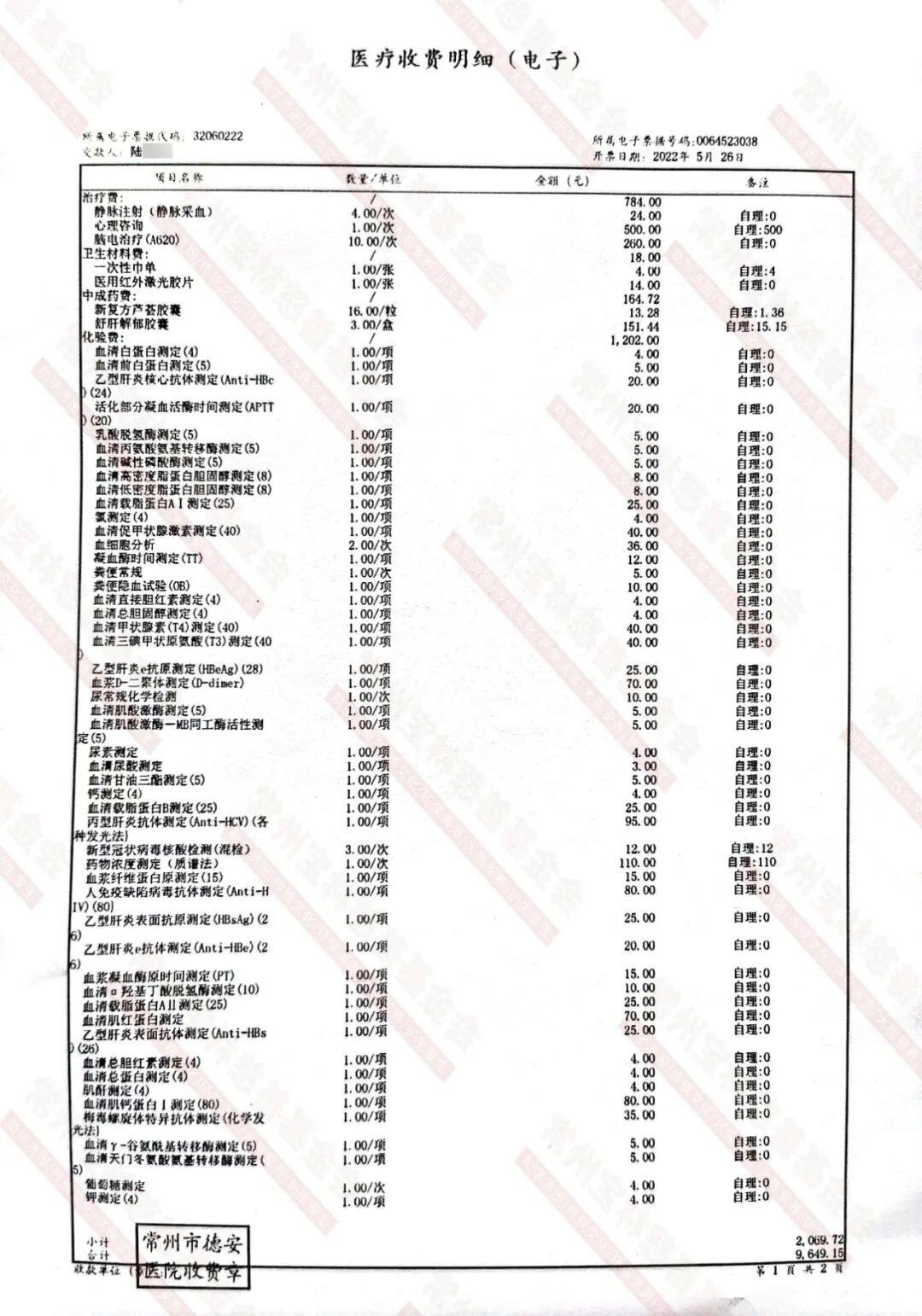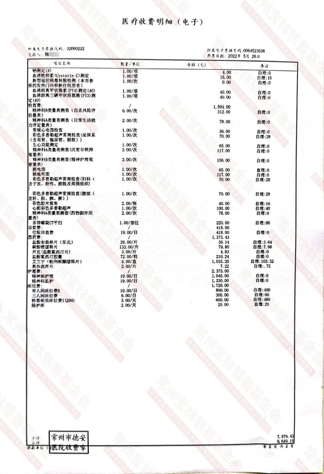 2022年5月26日完成一个疗程的住院治疗后出院, 本次入院治疗费用共计:2571.16元(已扣除医保统筹部分款项) ,相关明细如下: