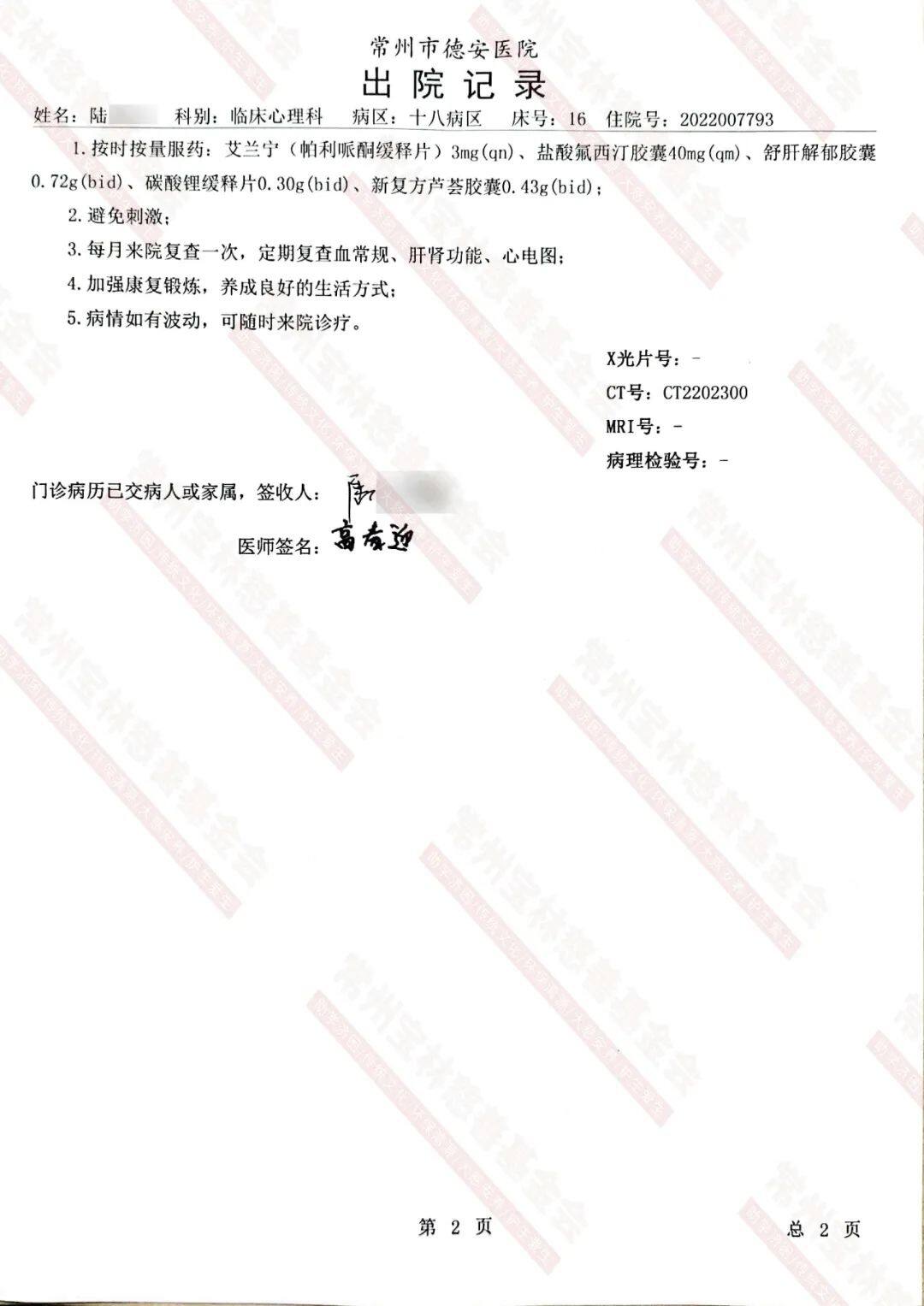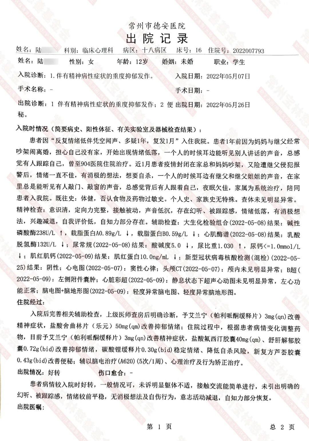 2022年1月28日辰辰(化名)完成了一阶段的住院治疗,出院后由于病情反复,于2022年5月7日再次前往常州市德安医院进行二阶段入院治疗。
