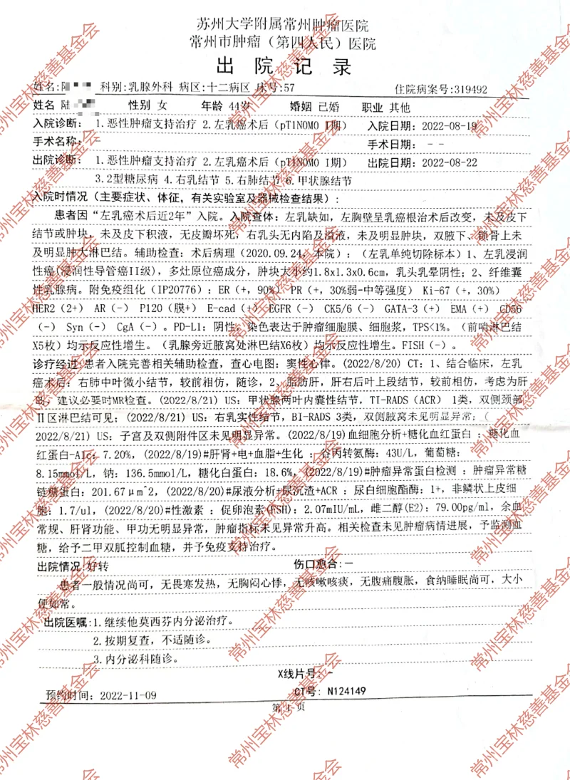 2022年8月7日,基金会救助的抑郁症少女辰辰(化名)再次前往常州市儿童医院接受治疗,并于8月11日出院。与此同时,辰辰的母亲于2022年8月19日入院进行复查(乳腺癌二期复查),现将相关诊疗费用公示如下: