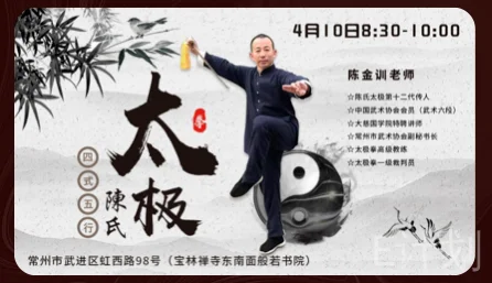 【公益课】陈氏太极第十二代传人陈金训老师4月10日8:30与你不见不散